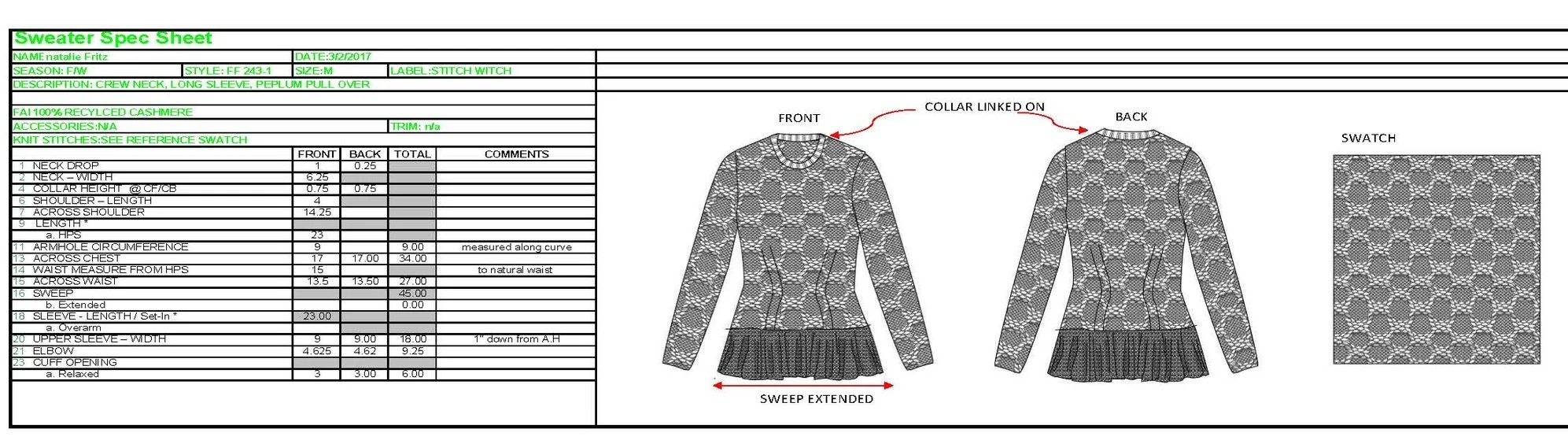 GARMENT SPECS